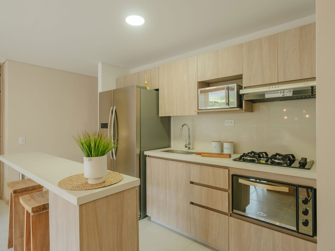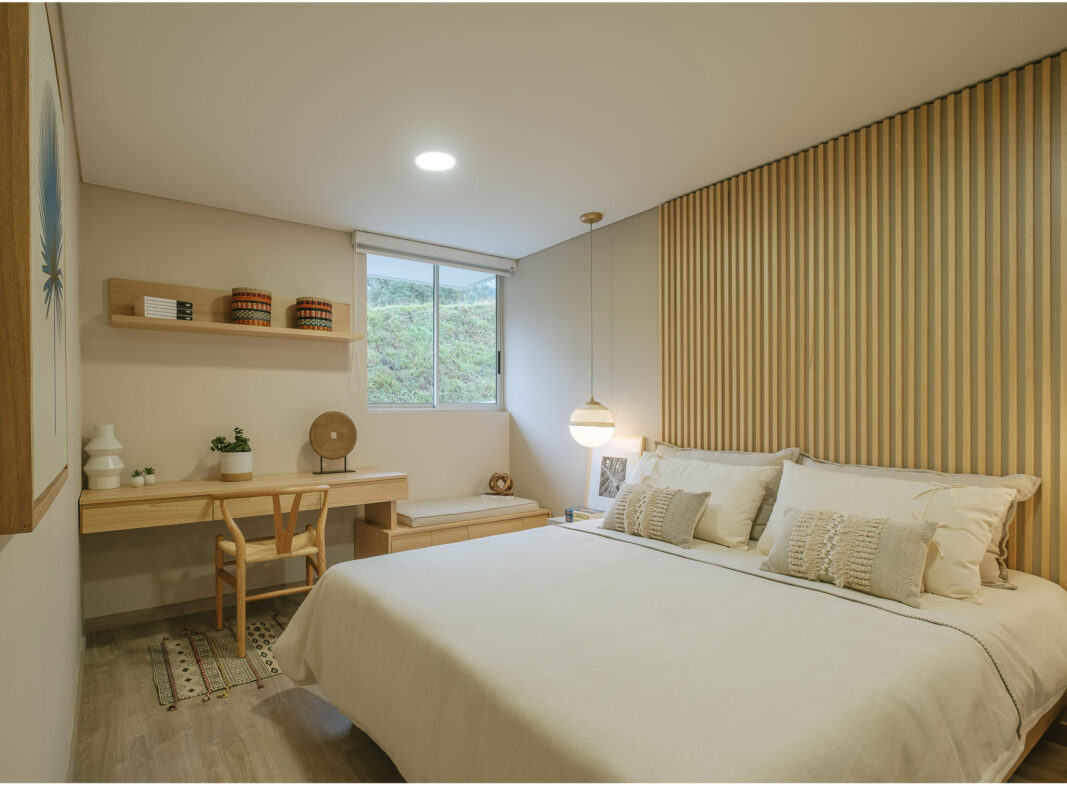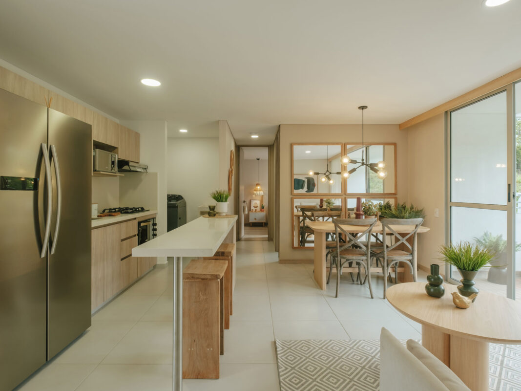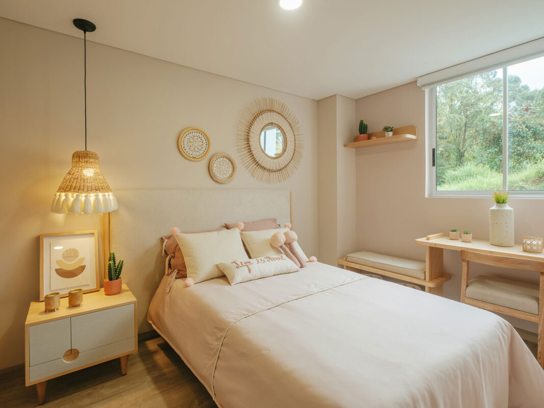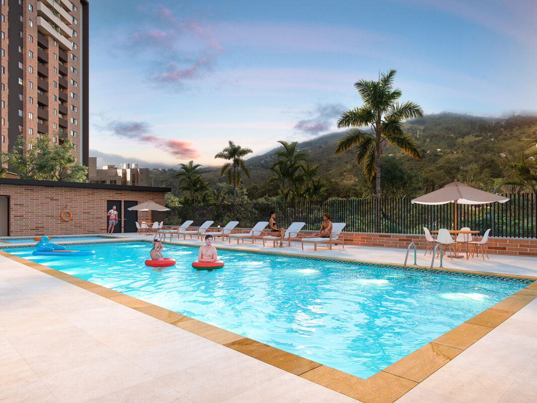 El proyecto cuenta con apartamentos de 2 y 3 habitaciones más balcón, con áreas que van desde los 54 hasta los 75 m2. Habitar Bantué es sinónimo de vivir cómodo y tranquilo. Aquí podrás gozar de más de 25 zonas sociales para VIVIR LA DIVERSIÓN POR TODO LO ALTO. Algunas de las zonas sociales del proyecto son: cancha, piscina, pista de triciclos, juegos infantiles, playground, baby gym, terraza lúdica, salón de yoga, cinema, salón de juegos, chimenea.