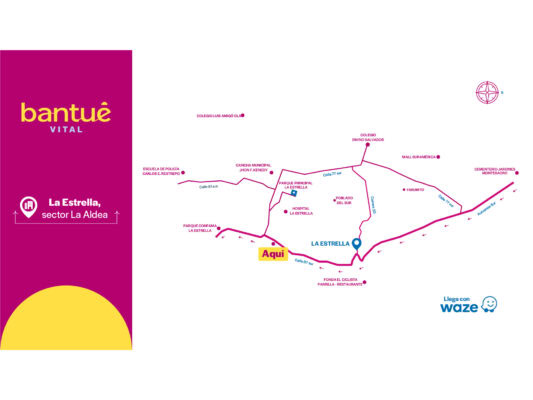 El proyecto Bantué está ubicado en La Estrella, sector La Aldea, su excelente ubicación permite acceder fácilmente a supermercados, almacenes de cadena, centros comerciales y de entretenimiento, colegios y hospitales.