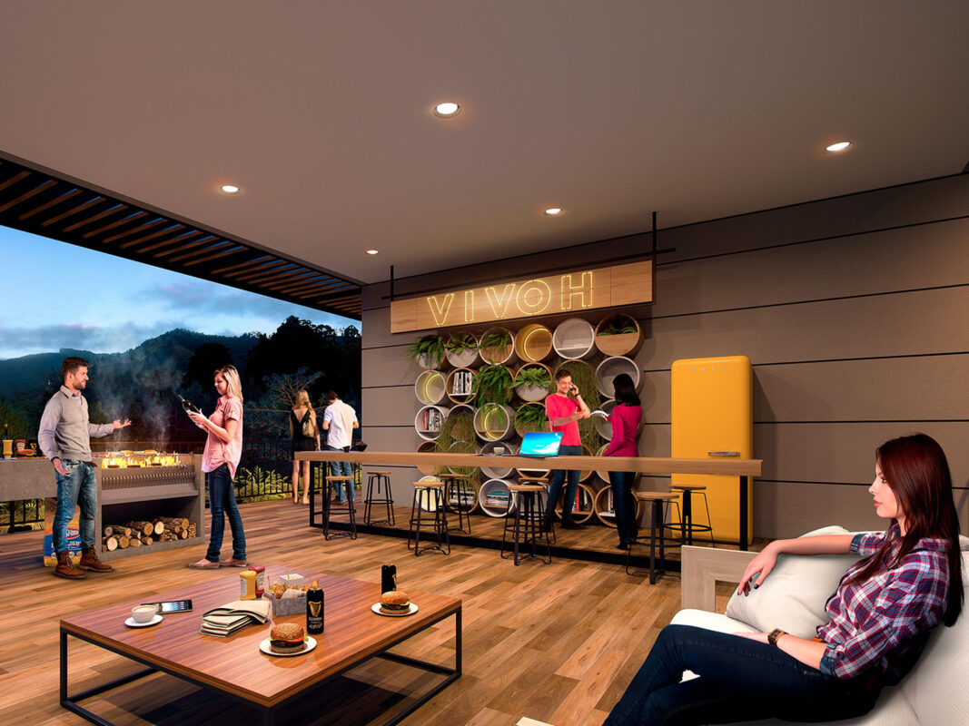 Un lugar tranquilo, reservado y muy natural espera por ti en ECOH, un nuevo proyecto en Sabaneta ubicado en el sector San José, a solo 5 minutos del parque principal, perfecto para que vivas en contacto con la naturaleza y con quienes más quieres. El interior de ECOH ha sido diseñado para albergar 6 mundos, cada uno de ellos especialmente creado para vivir y compartir experiencias, juegos o aficiones, al lado de familiares, amigos y los demás habitantes de este proyecto.