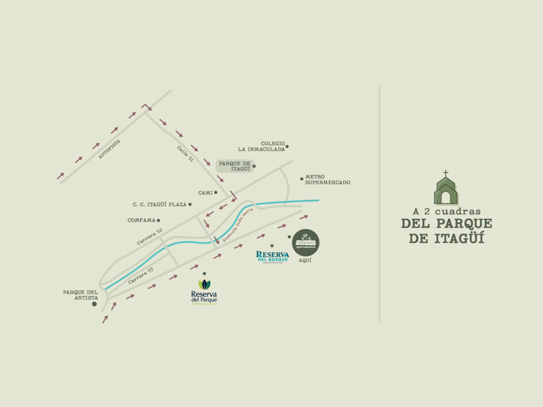 - Continúa por Cra. 53a hasta llegar a HERBARIO – Apartamentos Itagüí, Medellín Colombia