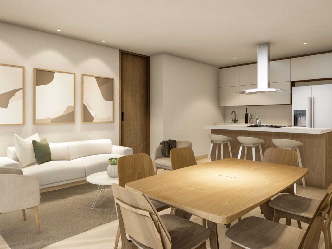 El proyecto contará con 132 suites de diseño único y servicios de lujo con calidad hotelera. Suites para vivir con todo a la mano, podrás elegir entre 1 o 2 habitaciones, contarán con espacios amplios, cocina abierta y ventanales con vista única.