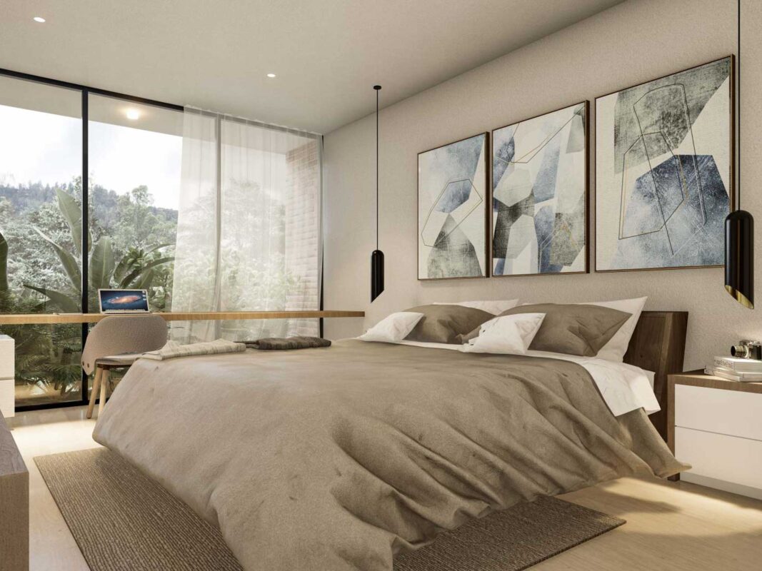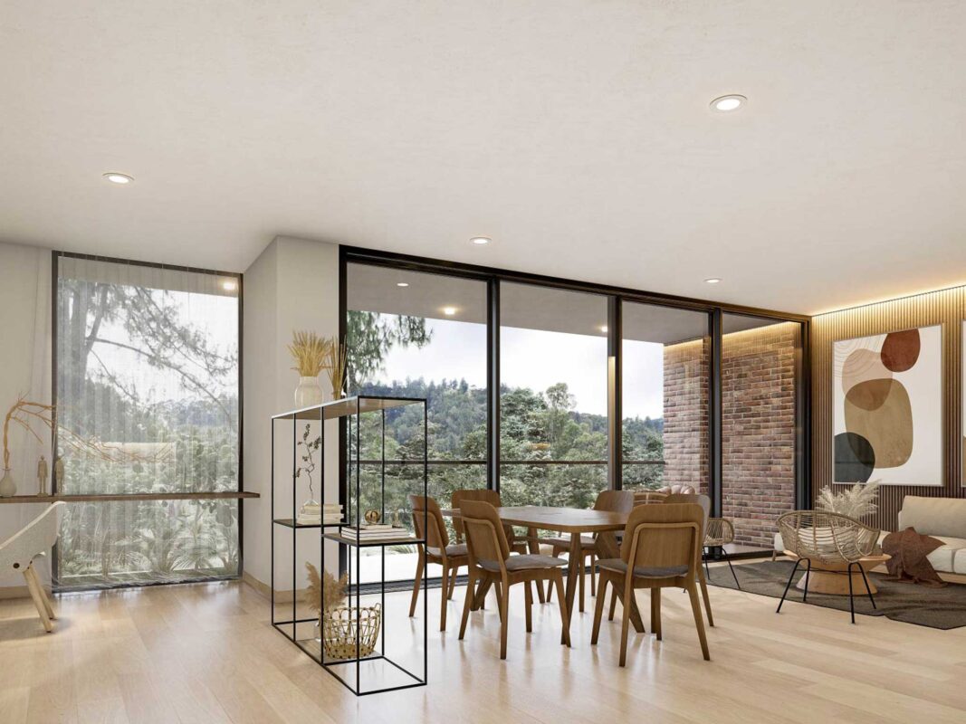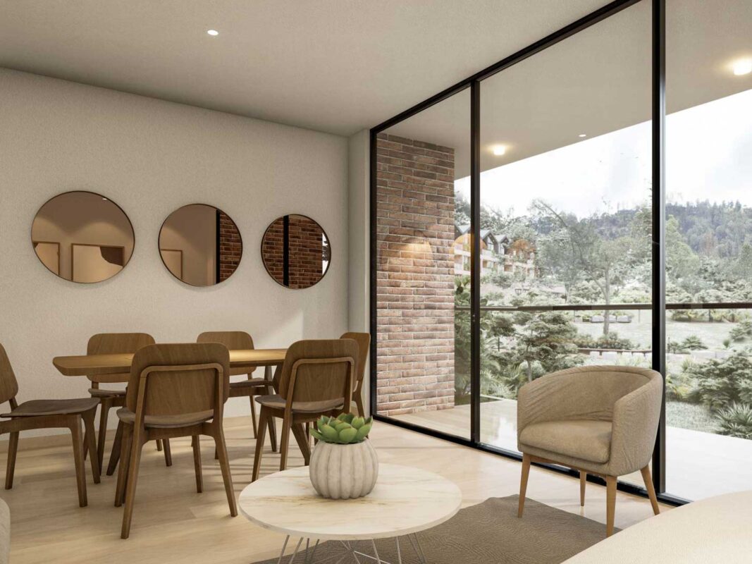 Rodeado de 8.000 m2 de bosque y zonas comunes a la vanguardia como: coworking dotado, simulador de golf, zona húmeda, sala de juegos, jardín infantil y senderos.