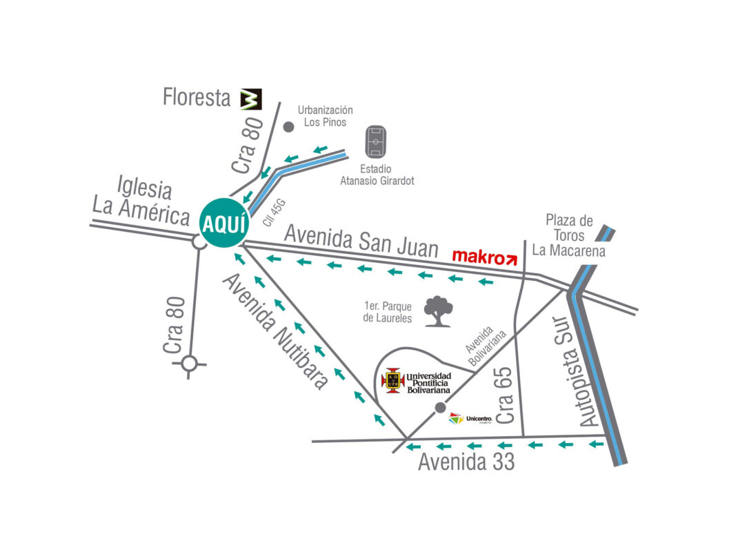 • Toma la avenida San Juan en dirección occidente hacia la carrera 80