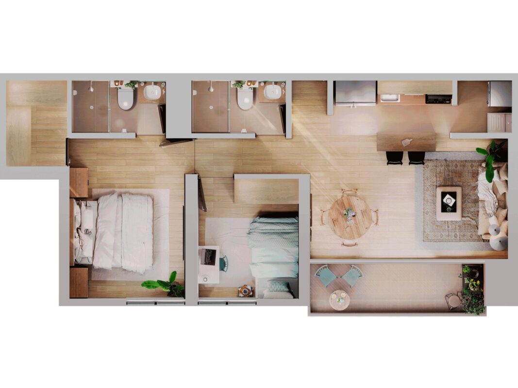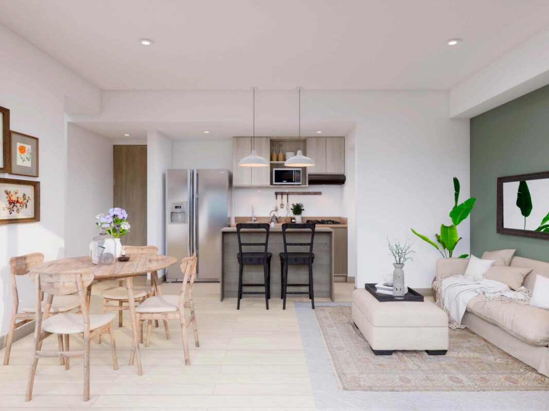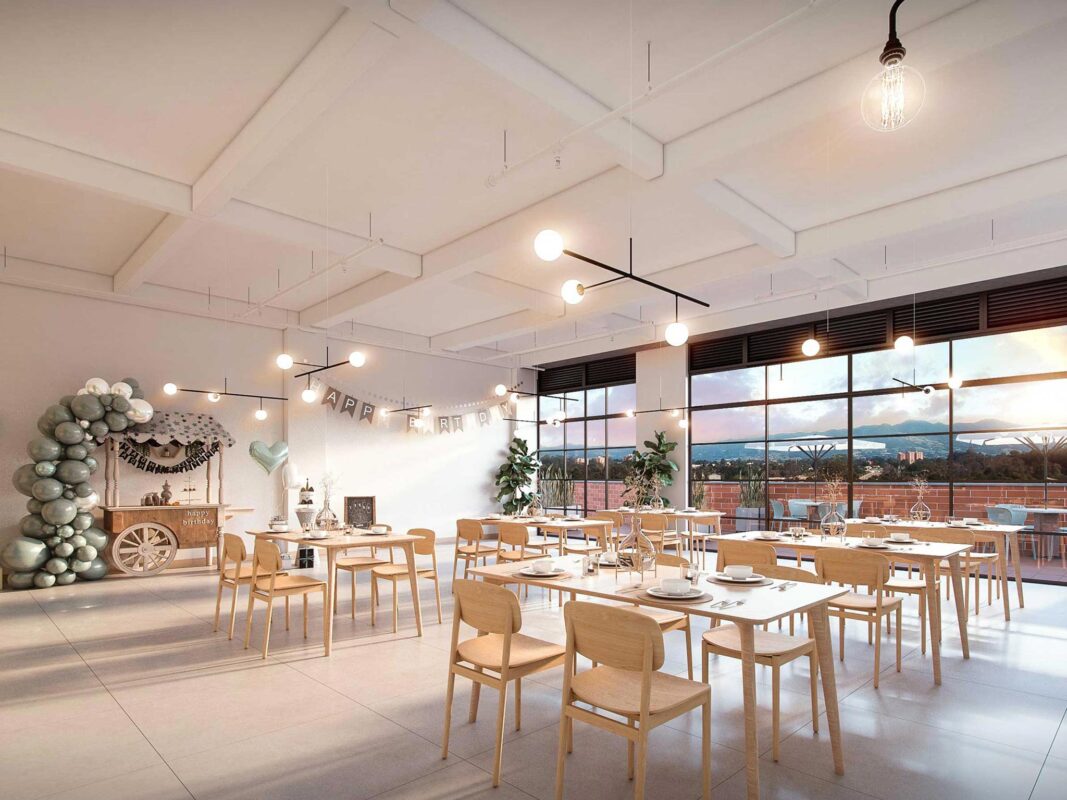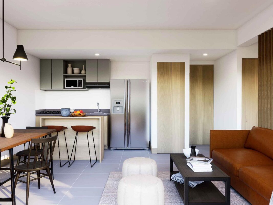 El proyecto cuenta con zonas comunes como: Coworking, pet spa, playground, salón de Yoga, zona húmeda, salón social, gimnasio, juegos infantiles, laundry room, jardín de picnic, parque activo, parque pasivo , estancia de relajación, parque de mascotas.